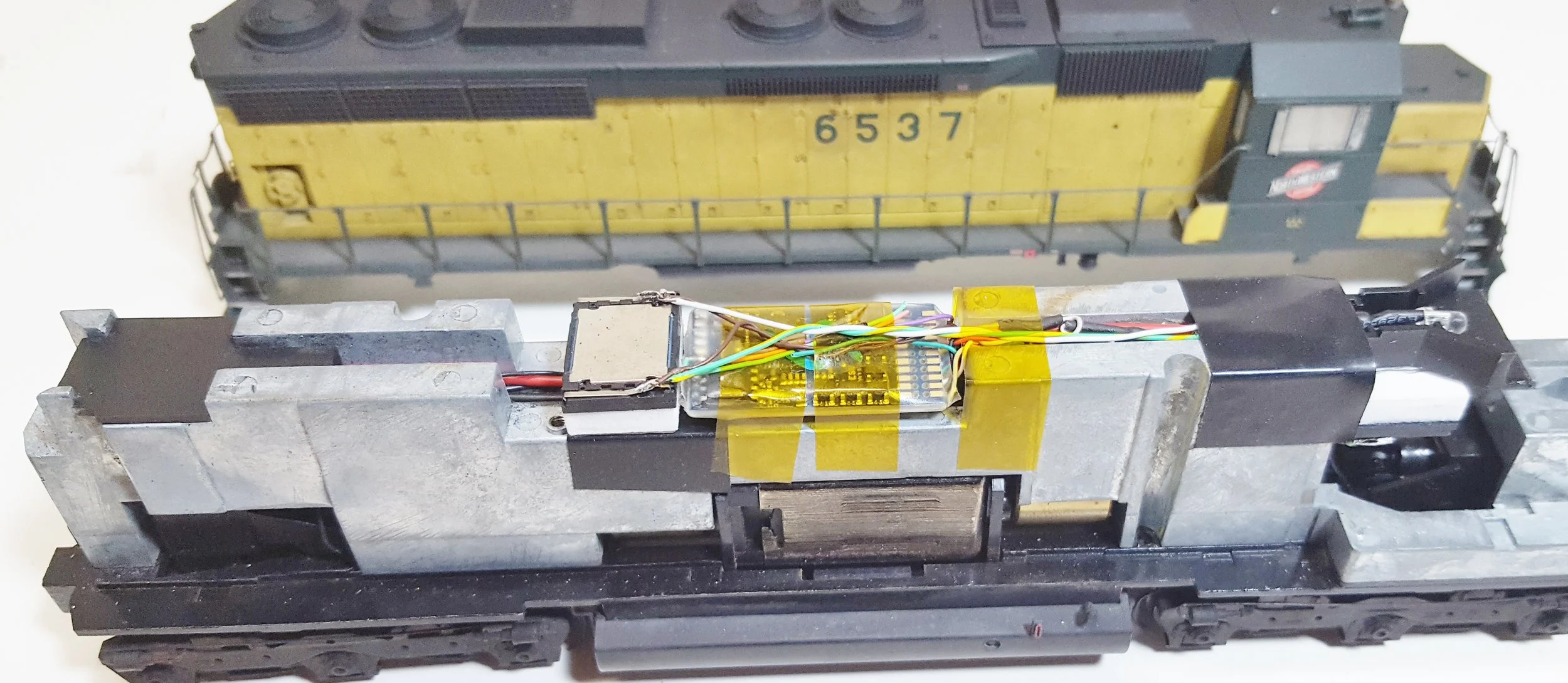 This is a Brass Division Point Baldwin CenterCab. It has a ESU LoKsound Select decoder with a Baldwin 606 dual prime mover sound file. It uses two Iphone speakers.